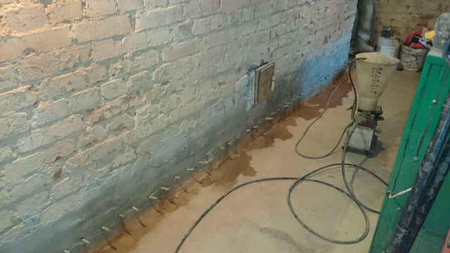 Iniekcja ciśnieniowa przeciwwilgociowa, osuszająca wilgotne mury budynku. Osuszanie murów budynku, odtworzenie izolacji przeciw wodnej zewnętrznej fundamentów masami bitumiczno-polimerowymi. Hydroizolacja uszczelnienie piwnicy wykonane od wewnątrz i pomieszczeń piwnicznych budynku. Osuszanie wilgotnej piwnicy. Realizacja Strzegom.